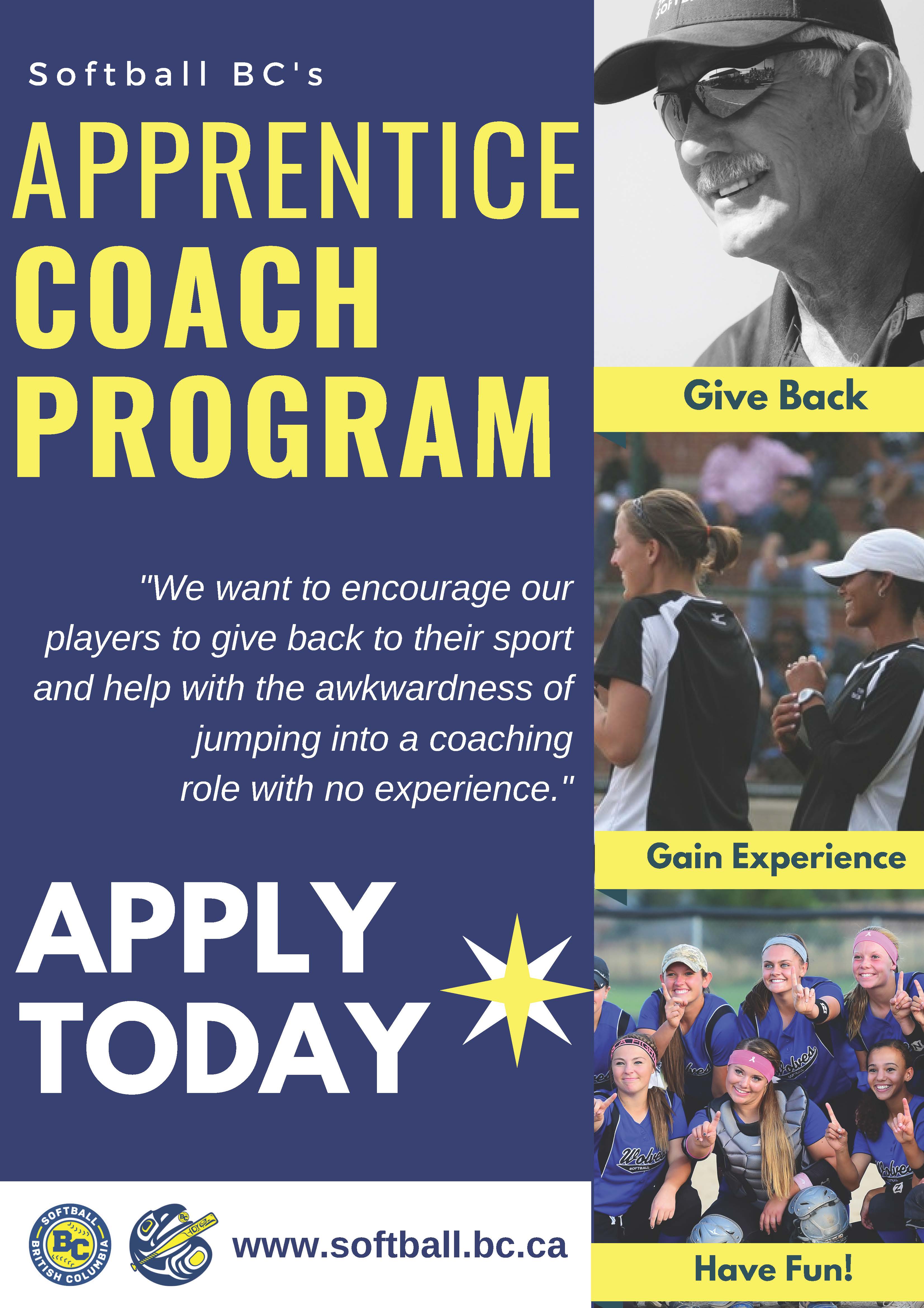 - Apprenticeship Coaches must be listed on the team roster once they have received a letter from Softball BC. The letter must be attached to the documentation at districts and provincials.